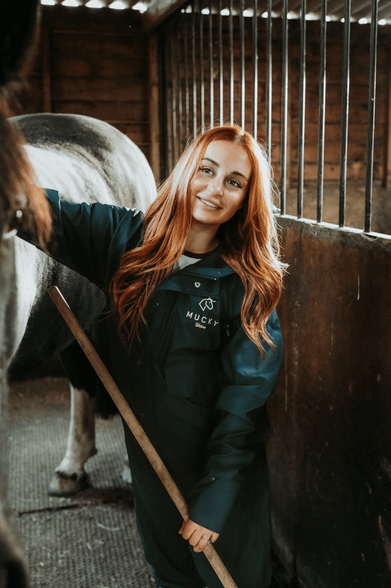 Designed by equestrian Holly Jenkinson for equestrians in October 2021, Hollys vision was a suit that could be worn before heading to work to perform yard duties and stay clean. A lightweight suit that could be rolled away in the back of the car or the tack room that is easy to throw over your work clothing and head off clean for the day ahead.